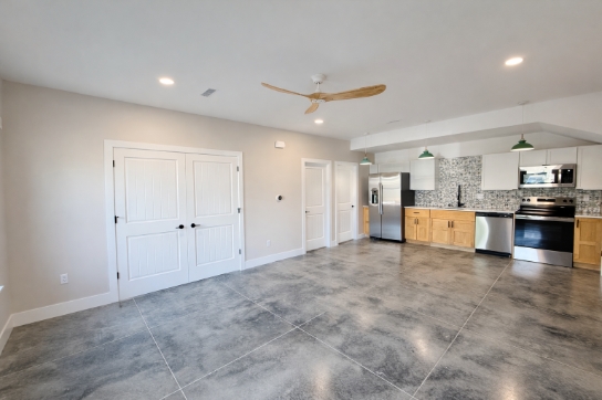 For Rent • This new build blends maximalist modern design with subtle nods to its namesake, Rainbow Road. The basement features polished concrete with a subtle checkered pattern and is intentionally left as a blank canvas to be utilized as extra family space or as a live-work commercial option. Upstairs, Unit A comprises the main level, with custom builtins and glass tile throughout. Bold colors and thoughtful details create a bright, contemporary space that feels curated, edgy, and distinctly expressive. $2,400 (Market Rent).